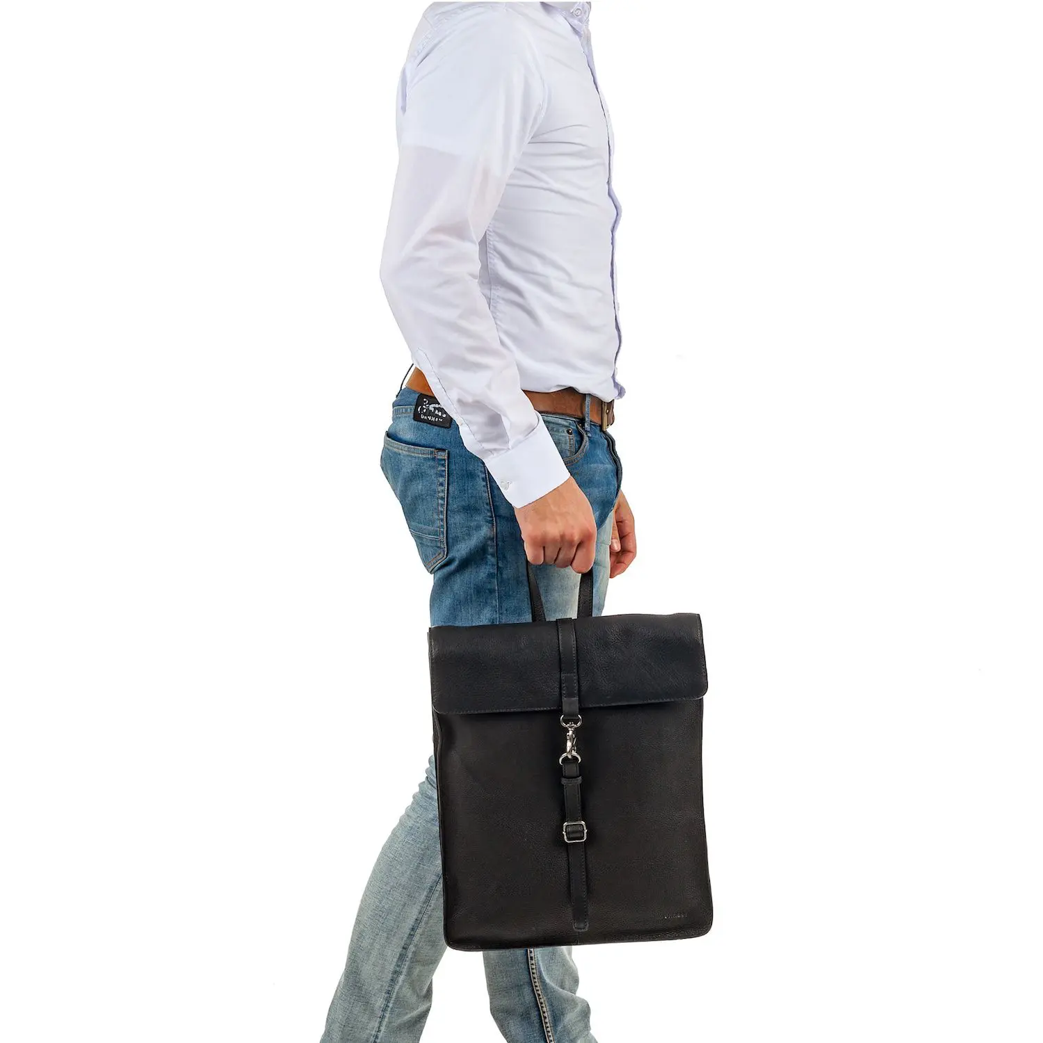 - Zijkanten en flap gemaakt van hoogwaardig leer.