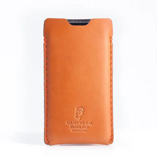 De Castello DaVarg CALIC5 Karmel is een handgemaakte pouch voor je iPhone 5. De case is gemaakt van volnerf leer en beschermt je iPhone wanneer je hem in handtas of zak vervoert of gewoon op tafel hebt liggen. Het leer is slechts 1.6 mm dik, maar de sterkte en duurzaamheid van volnerf leer zorgt voor een mooie uitstraling en goede bescherming voor langere tijd. Hoewel het duur en zeldzaam is, gebruikt Castello DaVarg uitsluitend volnerf leer.