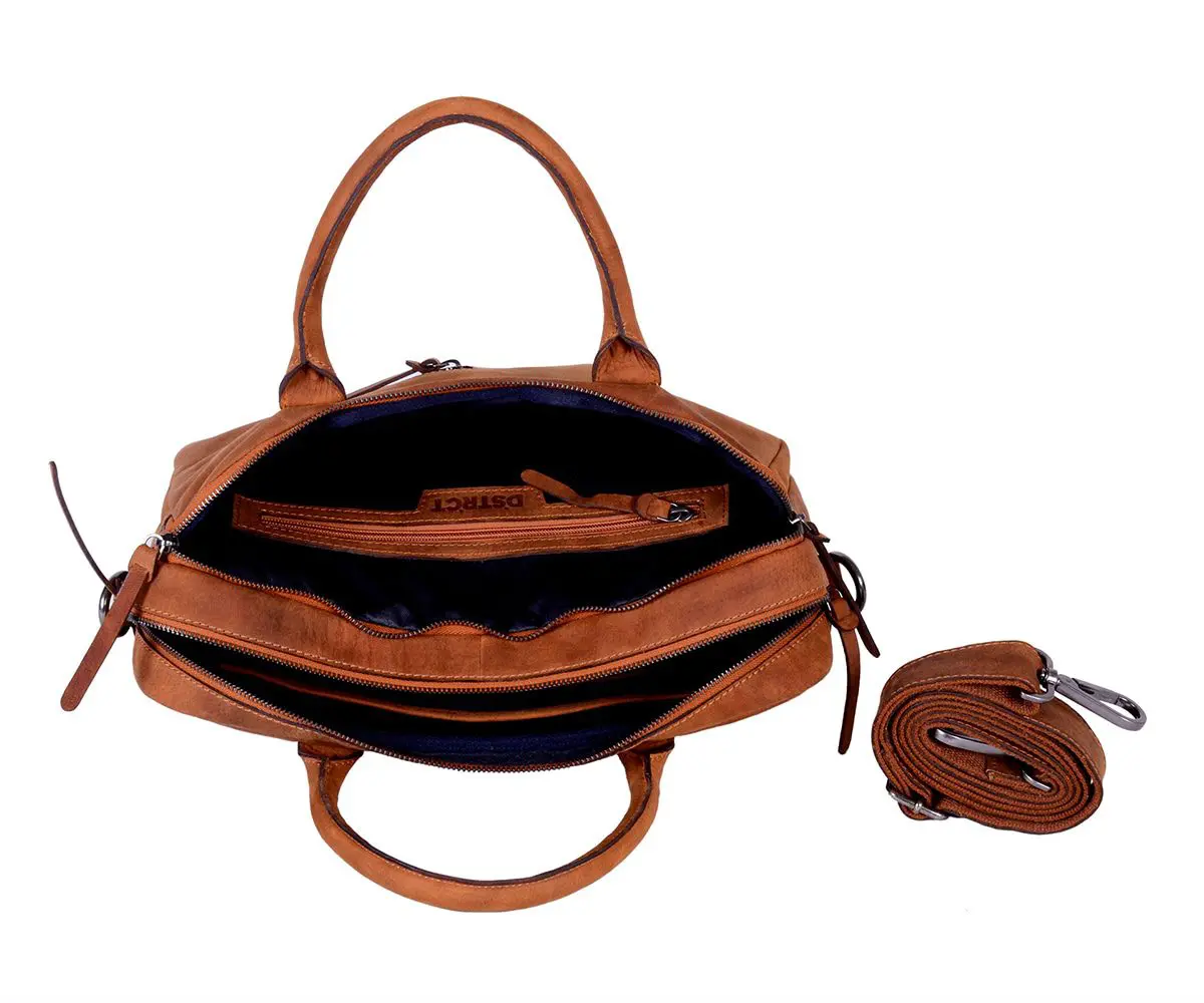 DSTRCT Wall Street Business Bag Double Zipper Cognac 11-15 inch
