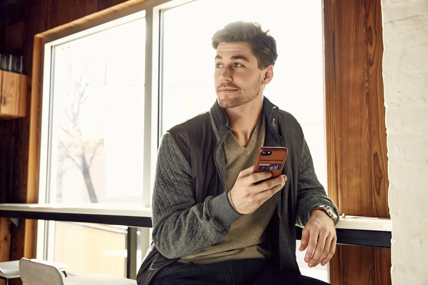 De case is verkrijgbaar in twee uitvoeringen, met en zonder twee vakjes voor pasjes en beschikbaar in 5 kleuren, Zwart, Cognac, Dried Herb (groen), Marsala (wijnrood), Warm Taupe.