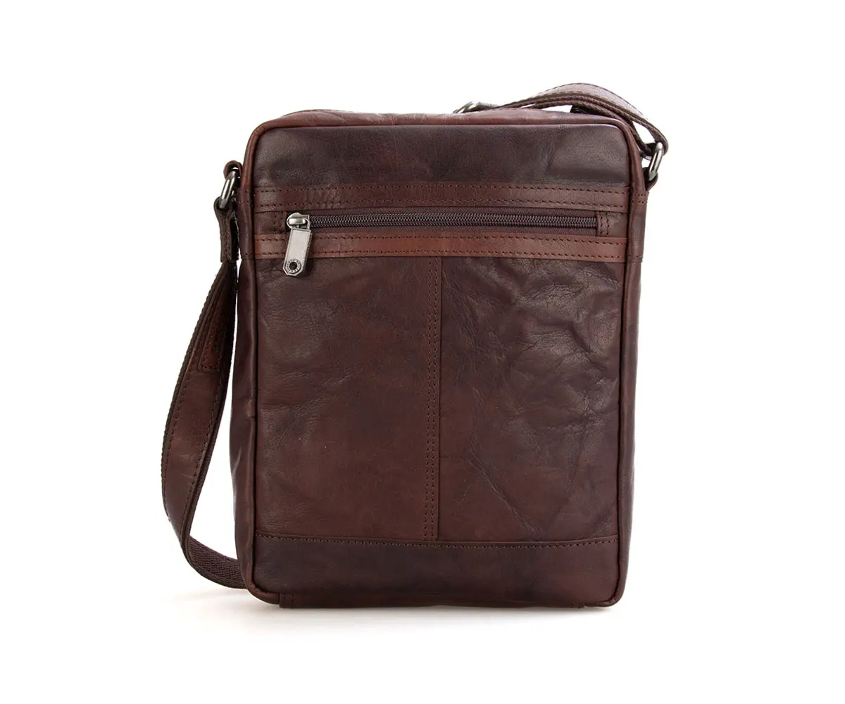 - Met verstelbare lederen schouderriem.